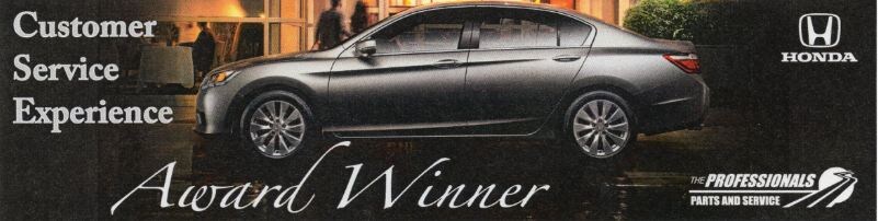 Tom Wood Honda is a 'Fixed First Visit' Award winner! They earned a score of 97.3 out of 100 to grab the top spot in their zone. They were awarded a special award banner and a $125 gift card to fund a celebration by Honda. In addition, they were also recognized as a Customer Service Experience Award winner! Congrats to Tom Wood Honda, and keep up the good work!